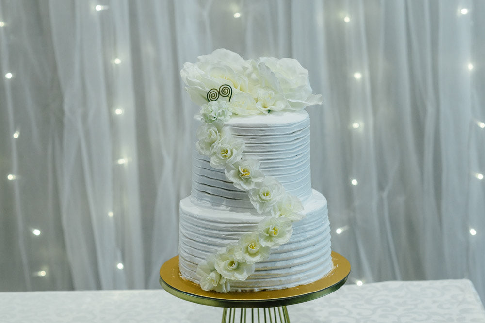 This classic white 2-Tier cake is simple yet outstanding. Build with a mixture of big and small white flowers. Perfect for your celebratory occasions.
